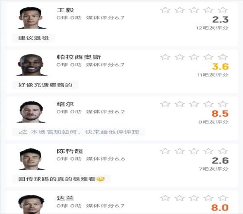首先就是王毅,他在出场90分钟的情况下,丢失球权次数高达18次,仅有1次抢断成功的同时,得到了全场最低分,而对于王毅在本场比赛的发挥,也是引来不少球迷吐槽,表示王毅应该及时退役,这种球员出自尤文青训,就是尤文青训的耻辱……