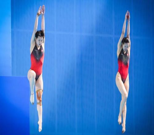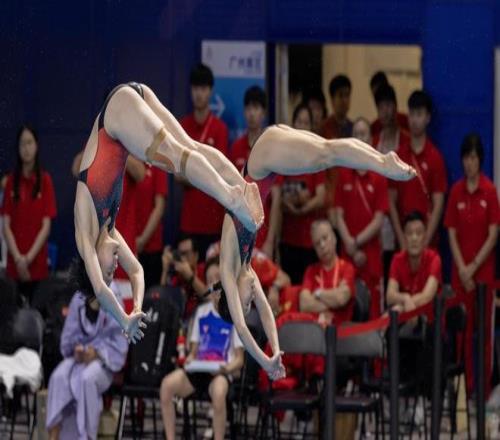 粤港澳全运会的跳板上,陈艺文和搭档林珊没有让主场观众失望。