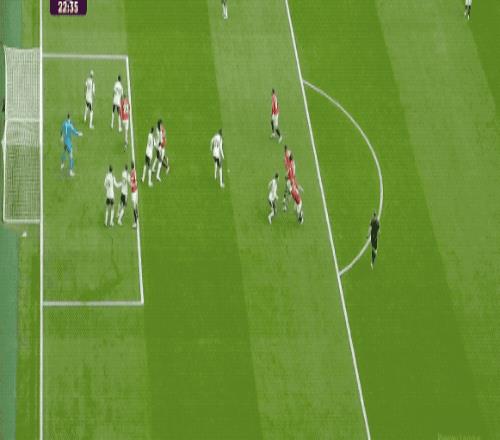 第70分钟,阿玛德·迪亚洛送出长传,B费停球足够精彩,帕利尼亚拍马赶到,B费仓促起脚,放了高射炮。