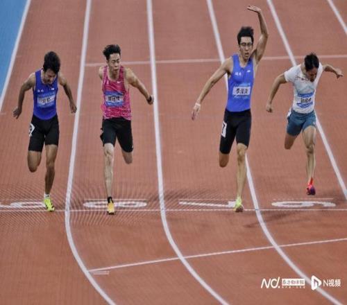 在两小时后进行的决赛发枪后,四五位选手都有争冠可能,位列第七道的李泽洋以较好的冲刺能力率先冲线。山东名将王胜杰以0.04秒的劣势位列第二。广西队曾克理跑出赛季个人最好成绩获得铜牌。广东队陈冠锋以10秒22,位列第六。