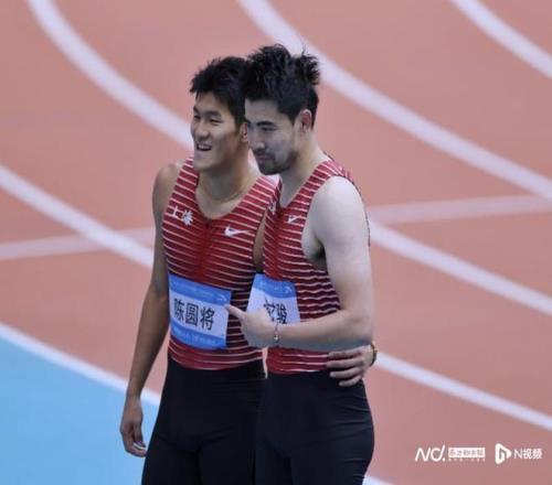 谢文骏与师弟陈圆将。在2025年全国田径锦标赛上,19岁的陈圆将跑出13秒18的个人最好成绩,中国男子短跨时隔多年再次打开13秒20大关。