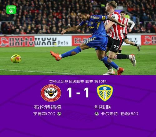 北京时间12月15日,英格兰足球顶级联赛第16轮展开角逐,布伦特福德坐镇主场迎战利兹联。下半场亨德森禁区内折射破门,之后尼奥托传中,勒温头球破门。最终利兹联1-1战平布伦特福德。