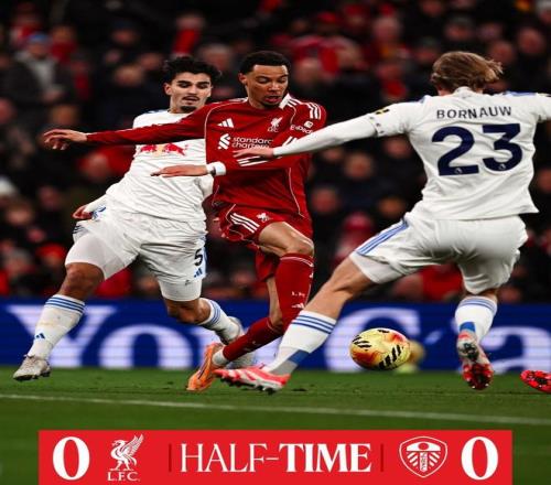 此役主场对阵利兹联,利物浦上半场9次射门,3次射正,被射门2次(被射正2次),上半场战罢比分为0-0。