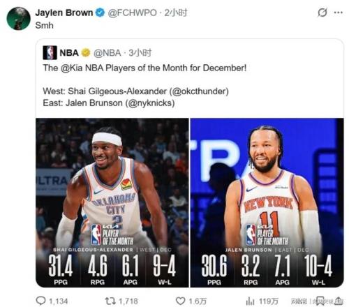 此前,他曾在社媒上发文直言上月东、西部最佳杰伦布伦森和亚历山大的表现都不如自己。所以,杰伦布朗今日就把痛失东部月最佳的怒火全部发在了快船身上!如此一来,这也就有了杰伦布朗的赛季50+以及带队31分狂胜快船。