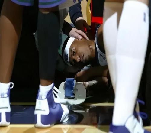 但似乎上天和他开了一个天大的玩笑,就在赛季末期,他在一场和森林狼队的比赛中,利用速度完成2+1,但却在空中失去平衡,重重摔在了地上,一度无法动弹身体。