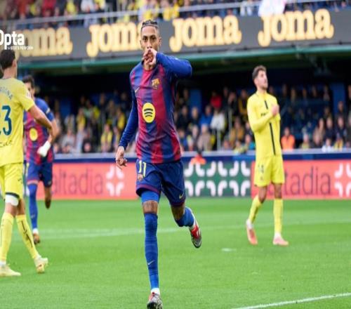 西甲第17轮,巴塞罗那客场对阵比利亚雷亚尔,上半场拉菲尼亚破门为巴萨取得领先,这是他西甲生涯第二次连续三场比赛进球。此役客场对阵比利亚雷亚尔,拉菲尼亚在比赛第12分钟主罚点