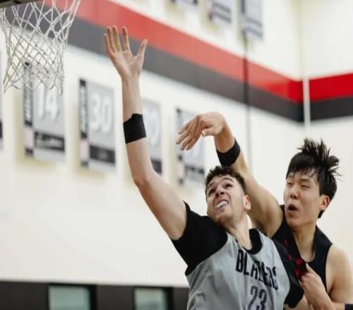 激烈!杨瀚森亮相开拓者队内训练,硬抗2米18美国大汉,拳拳到肉