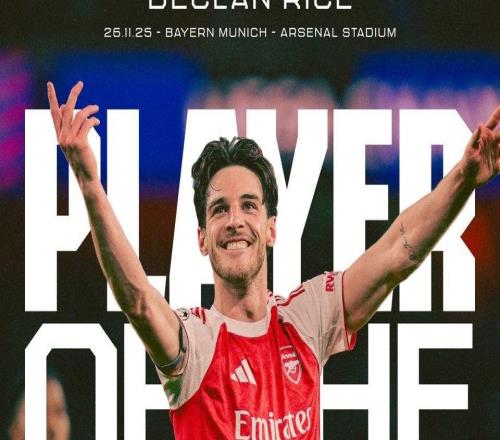 在今天凌晨进行的欧冠联赛阶段第5轮比赛中,阿森纳主场3-1击败拜仁,赛后,赖斯被阿森纳官方评为本场比赛队内最佳球员。本场比赛,赖斯首发出战并打满全场,奉献了3次关键传球,创造1次